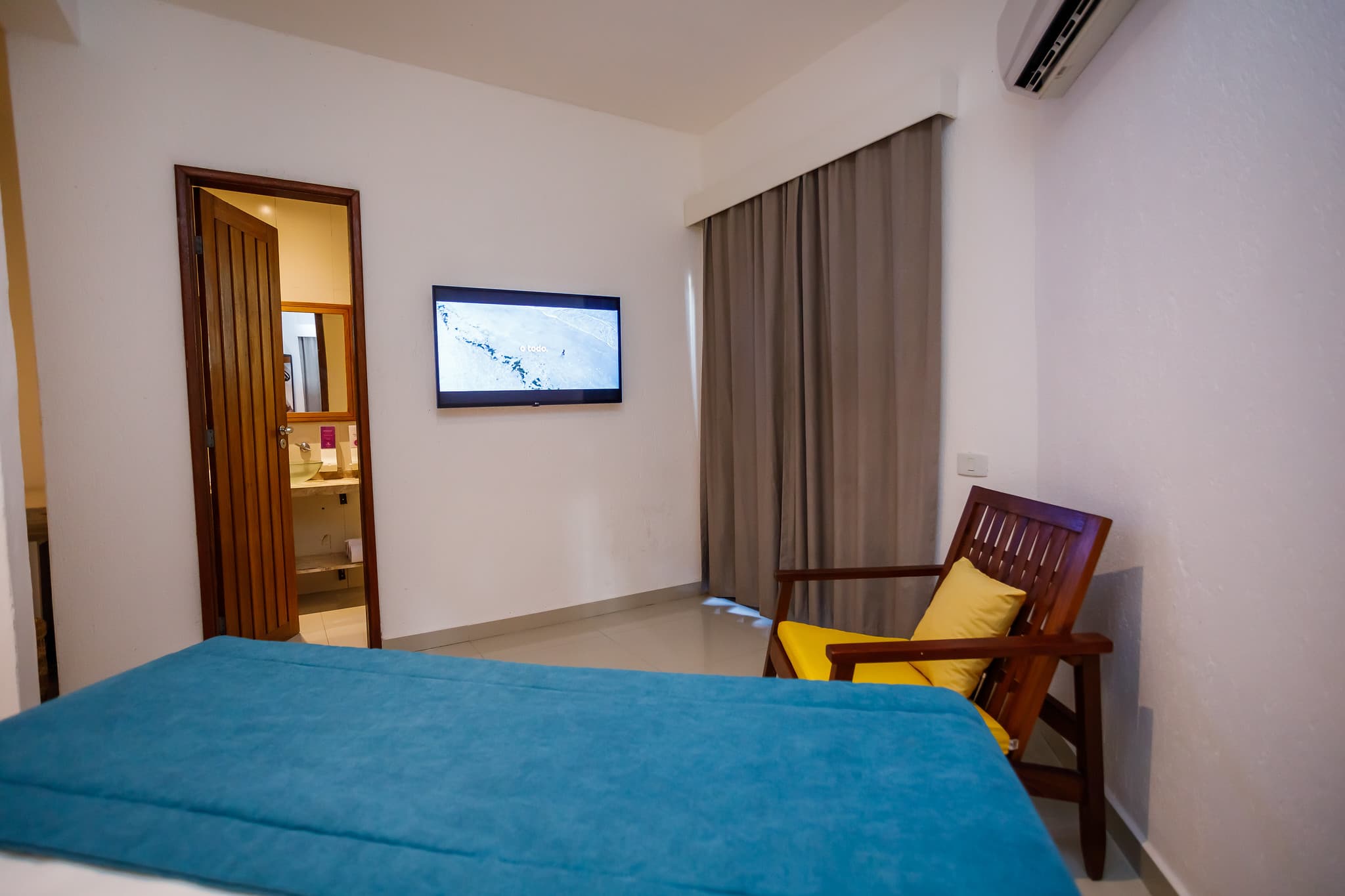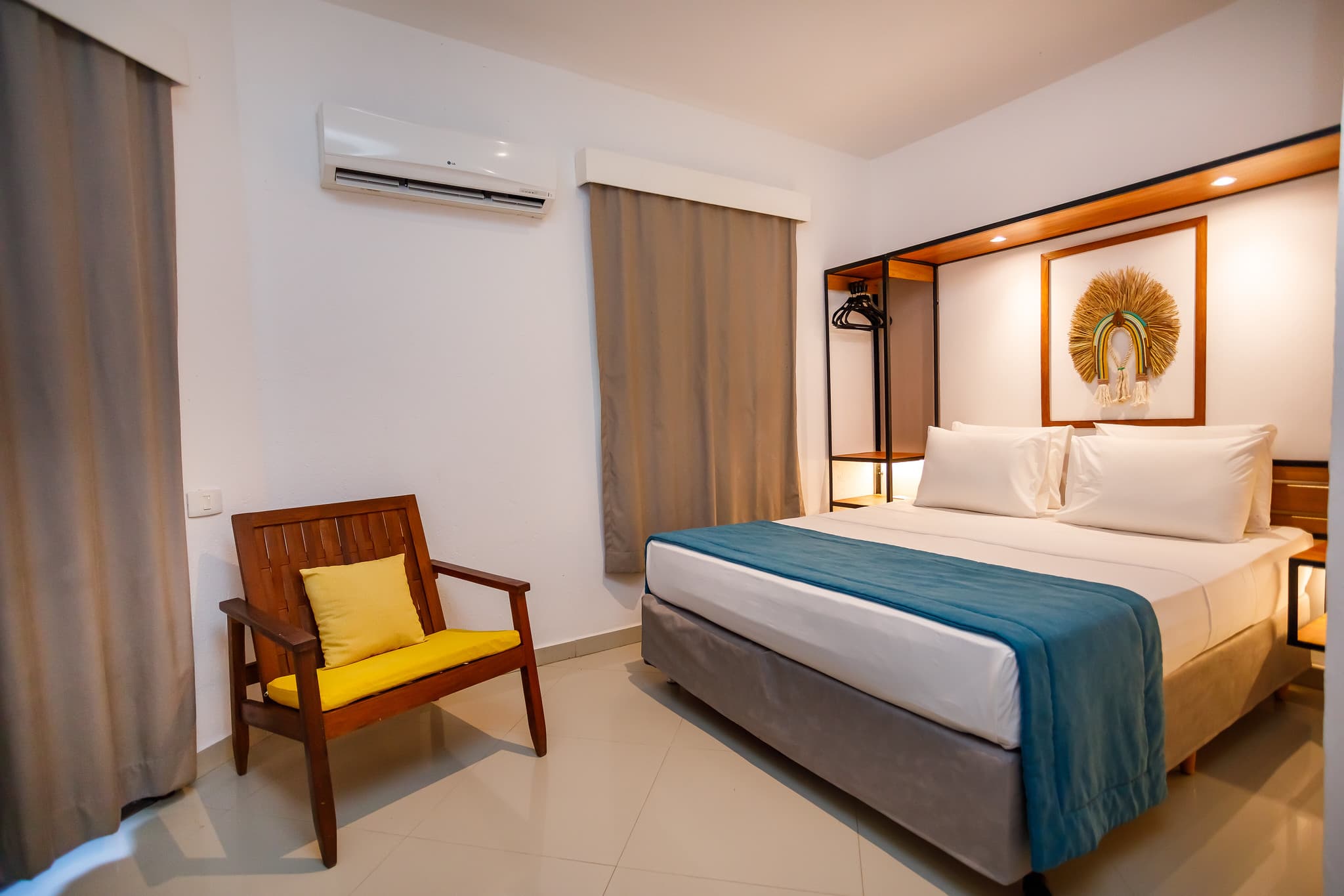 Com ótima localização, os apartamentos Standard Casal são bem aconchegantes e esbanjam tranquilidade. Próximos ao SPA e academia, trazem comodidade, além de bem-estar, oferecendo um momento de relaxamento. São apartamentos em Ambiente único, com cerca de 21 m². Possui cama Queen, vista piscina e/ou jardins. Os apartamentos Standard Casal têm todas as vantagens do All Inclusive. Acomoda até 02 pessoas (casal).