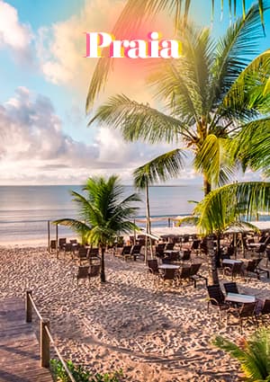 Com os pés na areia e sentindo as ondas do mar, você irá aproveitar cada minuto das suas férias em uma das mais belas praias do país. Nosso clube de praia é um charmoso ambiente exclusivo para hóspedes com acesso às vantagens do All Inclusive. Pegue um drink e aproveite o sol!