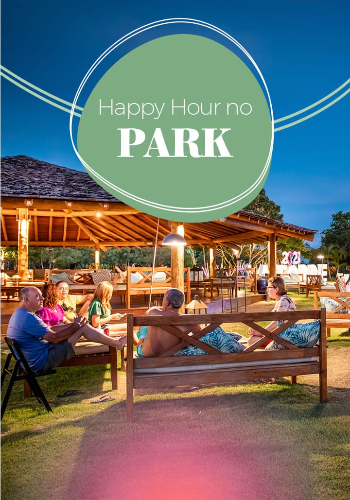 Você vai viver momentos encantadores no Park Lounge, um espaço aberto de ambiente agradável com muita música ao vivo, valorizando artistas locais. O bar tem deliciosas opções de bebidas, todas garantidas na sua experiência all inclusive, e você ainda pode aproveitar o lounge para relaxar em contato com a natureza. Memórias inesquecíveis em família são construídas aqui.
