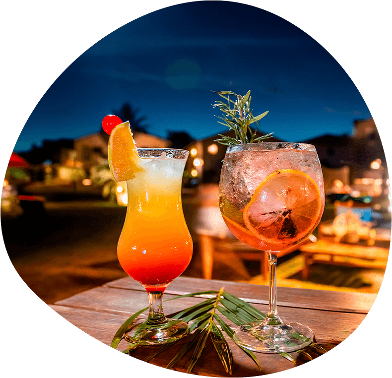 Seja à beira das piscinas, ou nas areias da praia, nós temos um bar à sua disposição. Disponibilizamos de uma variedade surpreendente de coquetéis e drinks, dentre eles o inconfundível Capeta, sucesso em nossa região. Aproveite e descubra as cores e os sabores do nosso cardápio de bebidas.