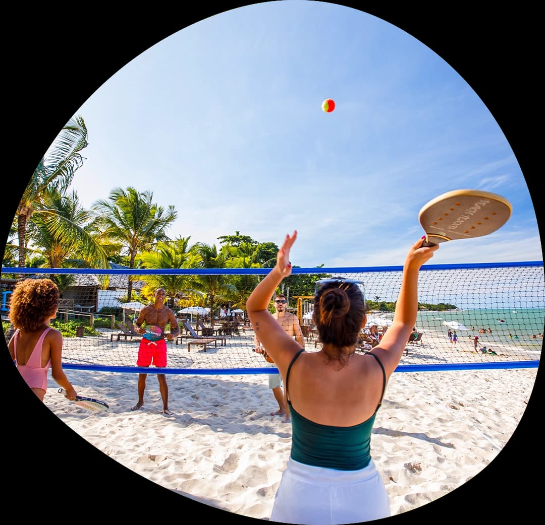 A diversão no verão aqui é garantida! Venha curtir nas nossas 4 quadras de areia, com vistas incríveis para a Praia do Mutá ou Park Lounge. Uma atmosfera descontraída te espera para momentos empolgantes com família e amigos.