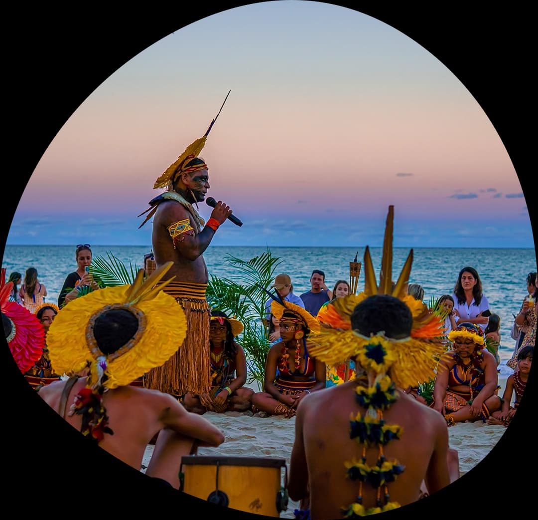 Venha se encantar com o fascinante Ritual da Lua Cheia! O nosso Clube de Praia Exclusivo recebe uma noite mágica, com mesas de frutas, drinks tropicais e, claro, música ao vivo para garantir uma atmosfera bem cativante sob a luz do luar. Tudo isso ficará ainda mais incrível com o ritual apresentado por indígenas Pataxós, te permitindo viver uma experiência cultural genuína, com um povo que é parte fundamental da história do Brasil.