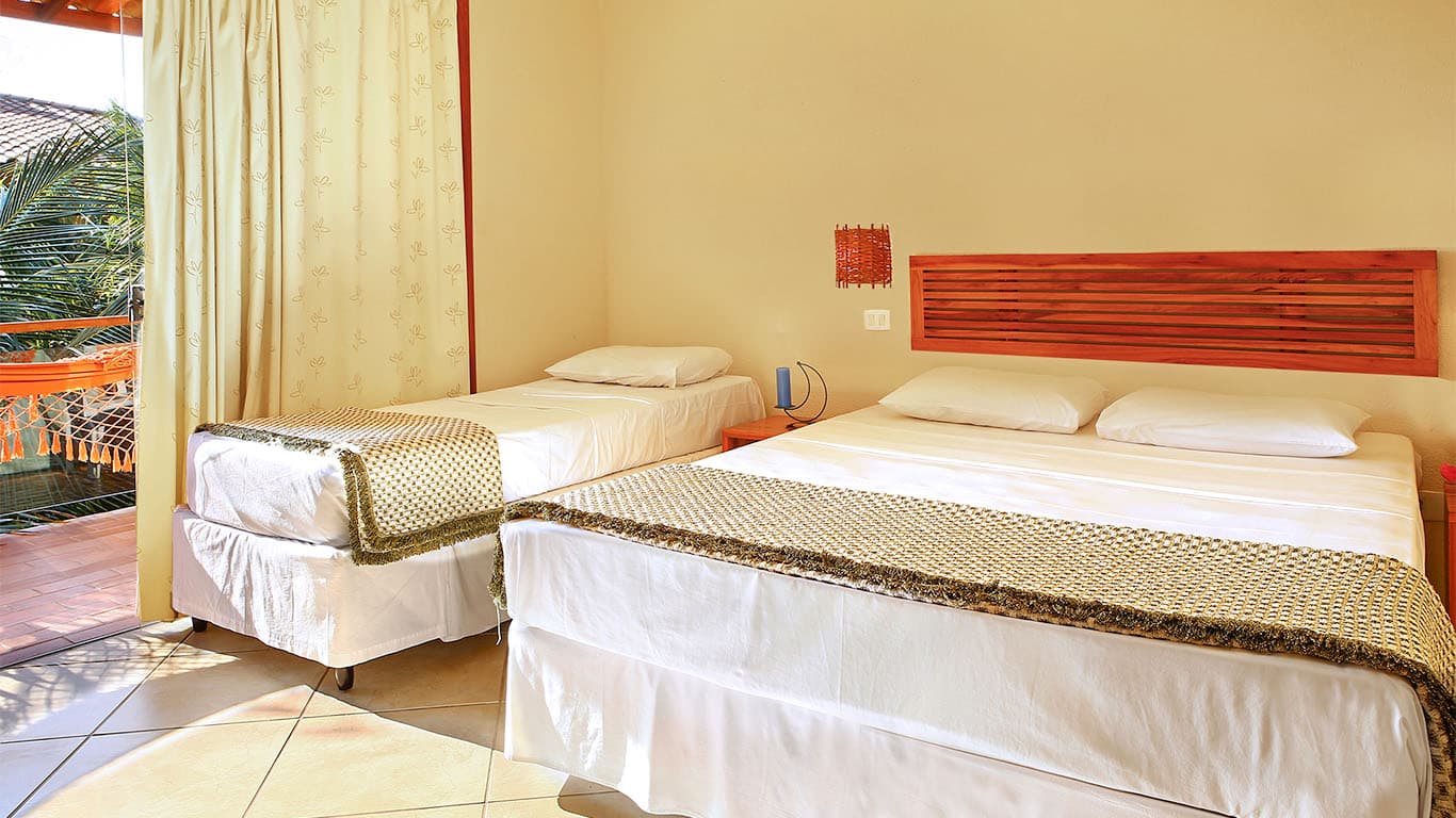 A Suíte Vila é uma excelente opção para aqueles que viajam com família, amigos e buscam privacidade, comodidade, além de conforto. Com acomodações amplas e localização privativa, a suíte possui 100 m² distribuídos em 02 quartos, sendo 01 suíte, 01 quarto com 01 banheiro social; sala, 02 TV's, geladeira abastecida com água, refrigerante e cervejas selecionadas; varanda com rede, vista p/ o jardim. Acomoda até 06 pessoas, sendo: 06 adultos ou 05 adultos e 01 criança ou 04 adultos e 02 crianças ou 03 adultos e 02 crianças ou 02 adultos e 02 crianças.